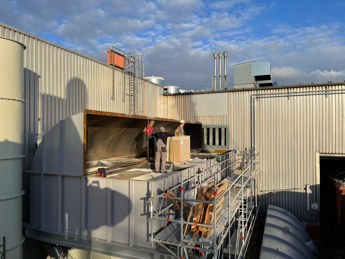 The chambers are filled with ceramic accumulators. They are covered with a ceramic insulation layer. Above the regenerator chambers is a central combustion chamber that is also covered with a ceramic insulation layer. This also contains the support/booster burner system.